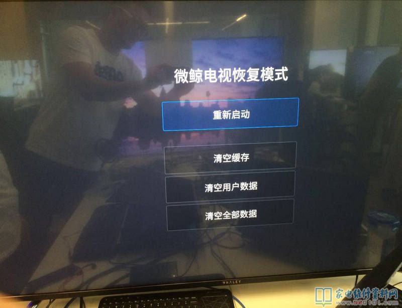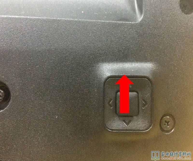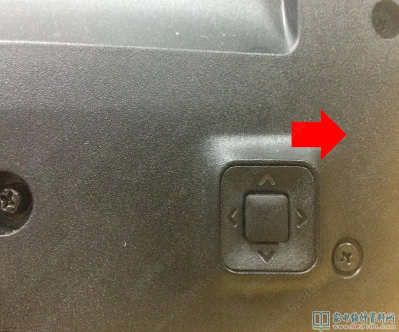 4.电视机切断电源,将电视机背后五向键往左拨(以面对电视机屏幕方向为准)不放,电视机上电(220V)