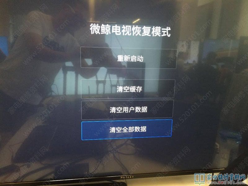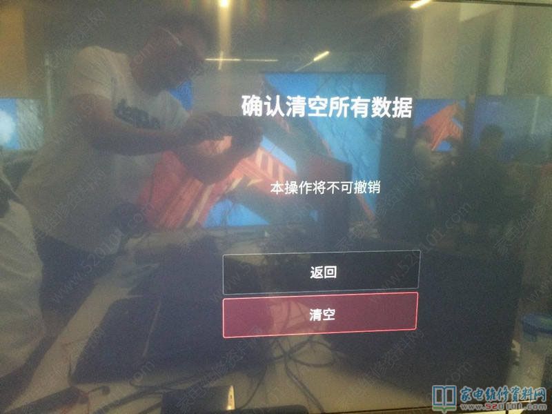 3.用遥控器或五向键选择"清空全部数据",按遥控器确定键或五向键中间键。