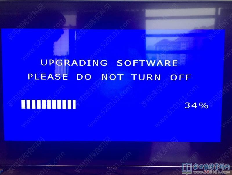 5.直到出现如下画面,松开五向键,等待进度条走完,电视机自动重启,升级完成,开始安装。