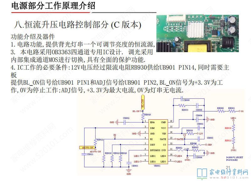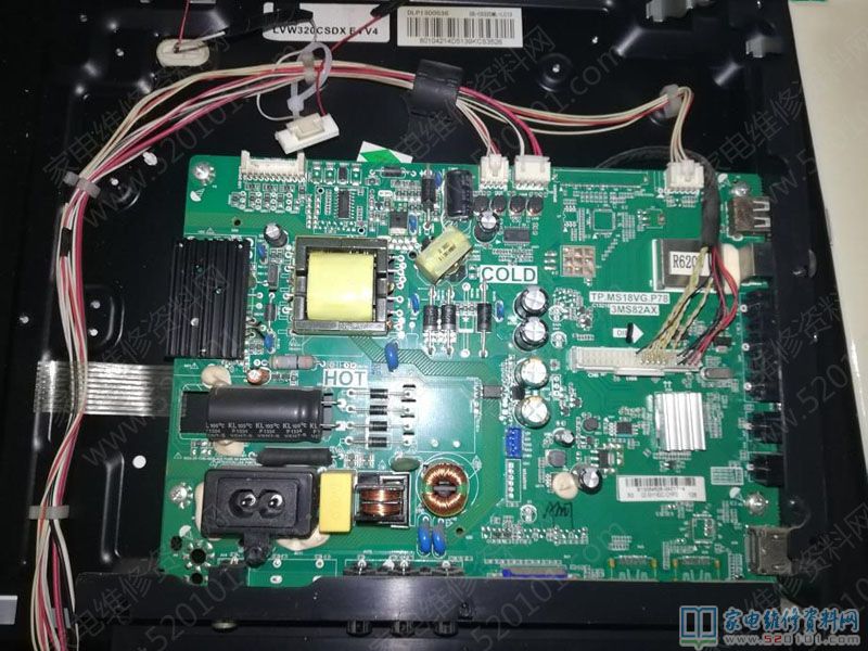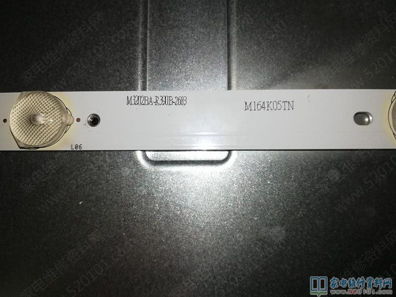 接修一台先锋LED-32B500液晶电视机,故障开机有声无图像。拆机检查,其主板型号是TP.MS18VQ P78 ,通电观察透光孔无光,点灯仪点不亮。测电压300v,12V,25V (背光供电)正常,灯条恒流驱动为OB3363 灯条电压待机52.5,开机60.8,应该是保护了。于是拆屏,灯条4C-LB320T-HQ2 三条串联,每条6灯,单灯6V。某宝购同型号拆机灯条,成色还不错,无发黄现象,价格也不贵。上机灯亮,测电压125V,电流230MA,电流有点大,稳妥起见改电流。6V 1W灯珠I=P/U=0.167A,170MA,18灯总电压108V。