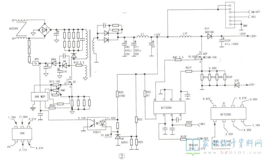 此时测得LED+端对地电压为36V。值得注意的是,本机为典型组装机,LED灯条并非铝基板灯条,散热性能不良。LED灯珠易损坏并易连带损坏背光驱动电路。