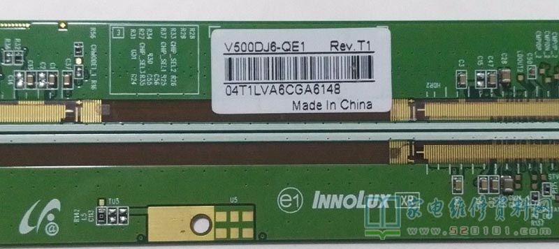 接修一杂牌50寸液晶电视机,故障是黑屏。换灯后背光亮,灰屏。所用屏幕是群创 (Innolux) V500DJ6-QE1 3840*2160高清屏。断开逻辑板右边排线左边出现正常开机画面,用隔离法右边画面也出现,但是画面迟滞偏暗不清晰,拖尾严重。因为有之前经验,果断撬开右边边框,露出屏幕玻璃边缘的六个耳朵。先撕掉其中一个耳朵,发现所撕耳朵区域画面有质的飞跃。三下五除二把剩下耳朵全部撕掉,再开机画面已经恢复正常,拆掉隔离纸片,画面仍然完美呈现。
