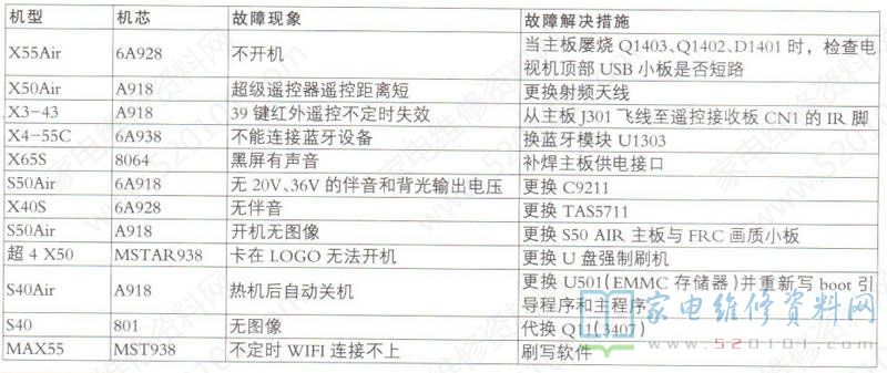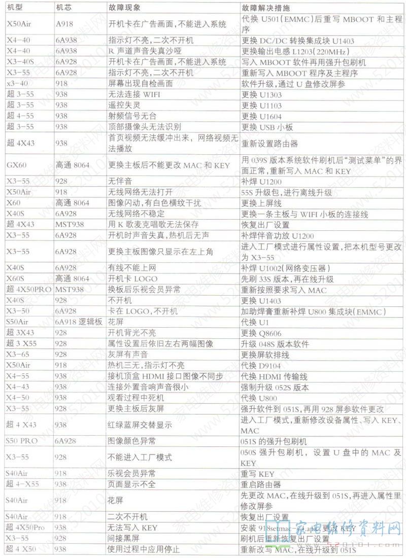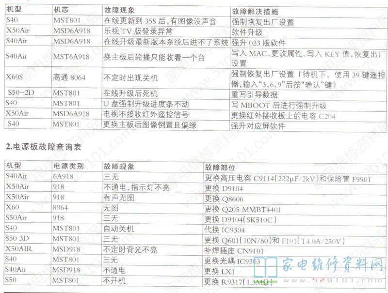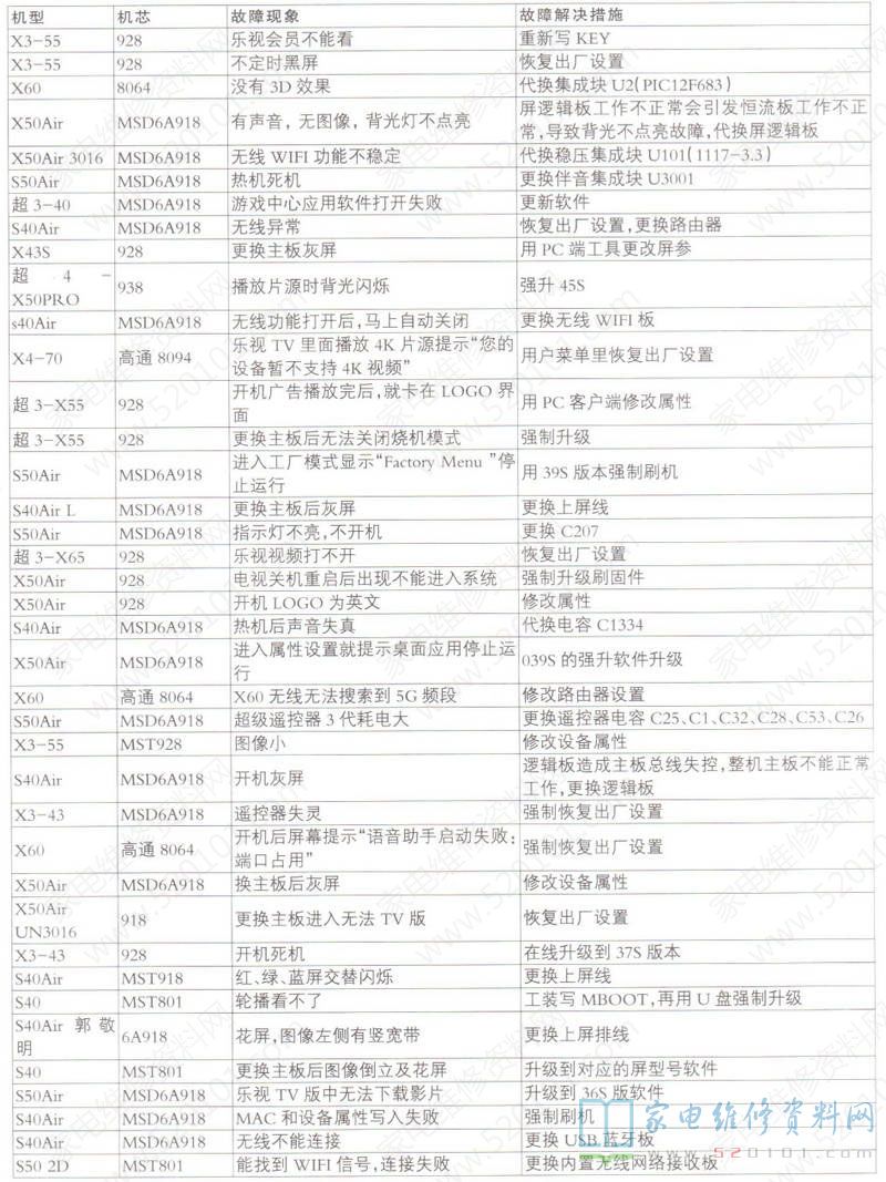 乐视液晶电视主板和电源板常见的故障维修一览表 2022-02-28 19:19:46 阅读 2662 次 评论 0 条 摘要: 本故障查询表包含截止目前乐视所有液晶电视机型,比如X55Air、X50Air、X3-43、X4-55C、X65S、S50Air、X40S、超4 X50、S40Air、MAX55、超3-55、X4-40、超4 本故障查询表包含截止目前乐视所有液晶电视机型,比如X55Air、X50Air、X3-43、X4-55C、X65S、S50Air、X40S、超4 X50、S40Air、MAX55、超3-55、X4-40、超4 X43、GX60、X60、X40S、超4 50PRO等所有机型的常见故障维修方法,以及机型所对应的机芯查询对照等。 版权声明:本文为转载文章,版权归原作者所有,欢迎分享本文,转载请保留出处! 点赞 1 分享: PREVIOUS:液晶电视LED灯条的应急代换方法 NEXT:乐视超3 X43液晶电视主板到各接功能晓板接口电路 文章导航