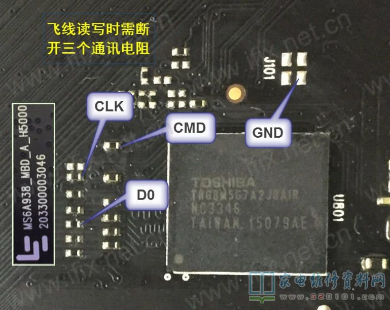 乐视MS6A938_MBD_A_H5000主板EMMC点位图 2022-03-31 18:24:34 阅读 642 次 评论 0 条 摘要: 乐视液晶电视采用MS6A938_MBD_A_H5000主板(938方案)EMMC点位如下图所示,飞线读写时需断开图中的三个通讯电阻。仅供维修参考。 乐视液晶电视采用MS6A938_MBD_A_H5000主板(938方案)EMMC点位如下图所示,飞线读写时需断开图中的三个通讯电阻。仅供维修参考。 版权声明:本文为转载文章,版权归原作者所有,欢迎分享本文,转载请保留出处! 点赞 分享: PREVIOUS:乐视液晶电视采用APQ8064方案EMMC点位图 NEXT:LETV乐视S40 Air液晶电视主板EMMC点位图 文章导航