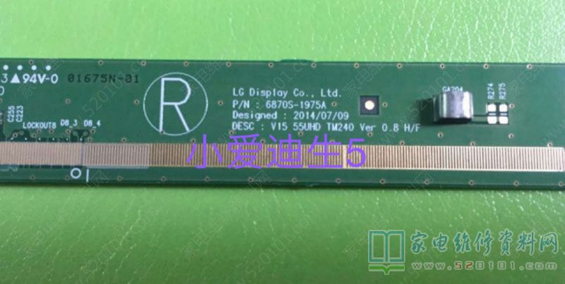 虽然故障表现不尽相同,但是用同一个方法修复。LG 49英寸液晶屏的边板型号6870s-1975a和6870s-1974a,逻辑板是6870c-05325。第一个故障案例是屏幕灰屏,断开右边排线(注:LVDS接口在上排线在下),左边出现图像。用隔离法判断(就是在逻辑板的软排线接口垫纸片,具体隔离位置大小因应不同型号不同故障而不同,自已尝试,应该比割一刀容易操作),当隔离右边排线从左至右数起的第6-12线时,图像完美展现。