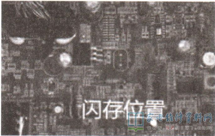 本着先软件后硬件的原则,找来一块新的闪存芯片25X40 ( 原机闪存芯片用的是F40-100G ,即25F40。因手头无该芯片,换上的新芯片型号是25X40,其他如25Q40也可代用),刷入正常数据(LC-32HC37,569HC0201F主板,CLAA320WF01屏)后换上,位置如图1所示,通电试机,再按“开机”键,指示灯由红灯转蓝灯,液晶屏正常显示开机画面。输入机顶盒的HDMI信号,图像、声音均正常。