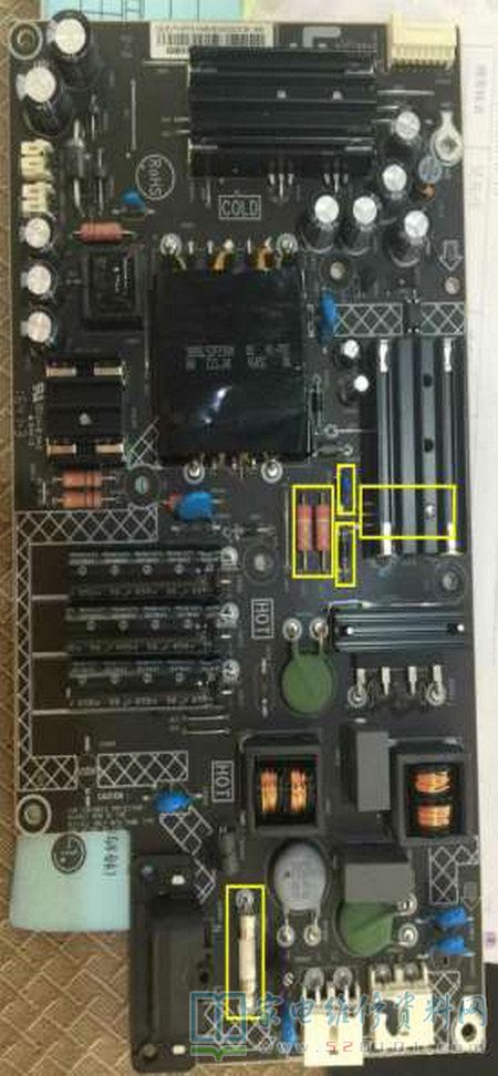 乐视504300003158此板呈三无状故障很多,原因是因为MOS管的源极和漏极间的电容 C9119 损坏后导致其他部件的损坏,现整理出需更换的部件位号及参数供大家参考。