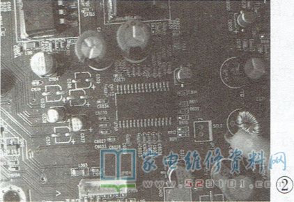 提示:对于采用单独音频解码、音效处理DSP或DAC变换IC的彩电而言,若相关晶振电路不良(如晶振内部接触不良、引脚虚焊、性能不佳等),则会出现无伴音或伴音中有杂音故障;对于将音频解码、音效处理、DSP或DAC变换集成在主芯片内部的彩电而言,若相关晶振电路不良,则会出现图像异常、伴音中有杂音、死机或不开机故障。