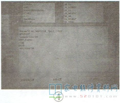 一台创星王牌3237型LED液晶电视,通电后红灯亮,二次开机无反应不开机。该机无副电源,通电后开关电源即工作。测开关电源输出12V、24V正常。为了快速判断故障部位,查看开机打印信息,如图4所示。