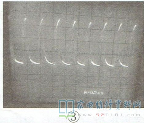 3.3Vsb电压的形成电路以UL1(1118-2Y0K)为核心组成。UL1 的①、②、⑦、⑧脚组成1.8V稳压电路,③~⑥脚组成3.3V稳压电路,当④脚输入5Vsb电压时,⑤、⑥脚输出3.3Vsb电压。二次开机后,主芯片u9( TSUMV59XU-ZI)的71脚输出3V高电平,三极管QM21饱和导通,把P沟道场效应管QM22的栅极电压拉低到0V,QM22导通,漏极输出5V电压加到UL1的②脚,UL1的⑦、⑧脚输出1.8V直流电压,供主芯片内部的DDR使用。1.2V电压形成电路以U4 (丝印号为GG6E )为核心组成。通电后5Vsb电压加到U4的④脚,同时也加到使能端①脚,电路开始工作,在③脚上产生幅度约为5Vp-p的脉冲,如图3所示。