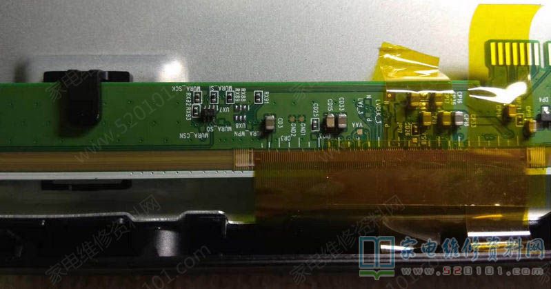关机拔电后,测量各点对地电阻,发现VAA对地短路。VAA上同时并联有多个电容,经拆下检测,发现CP33短路。换件后修复。此屏幕电容短路为常见故障,如果大家有遇到相同情况的,先检查一下这些电容。