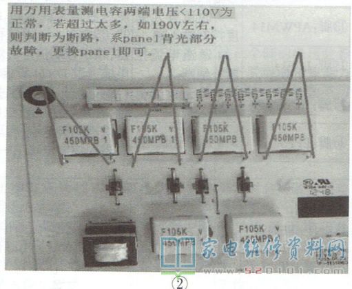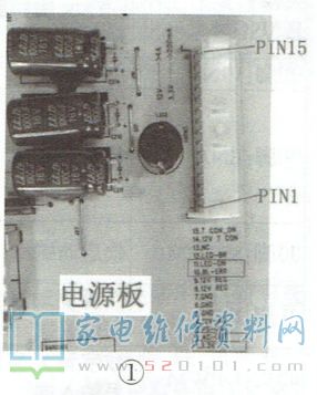 电源板关键测试点如图1所示,Panel(面板)背光故障电源板检测点如图2所示。