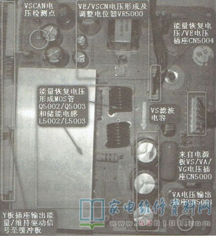 (3)、检查屏电源板 拔掉电源板所有连接线,在VS电压输出插座处连接200W灯泡作为假负载,用数字万用表测量其PFC、VS、VA、VG、5V等电压是否正常。