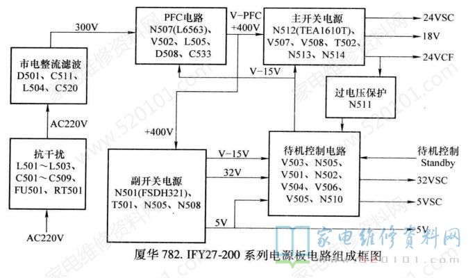 厦华782. FY27 200系列电源板电路原理和维修图解如图3所示。