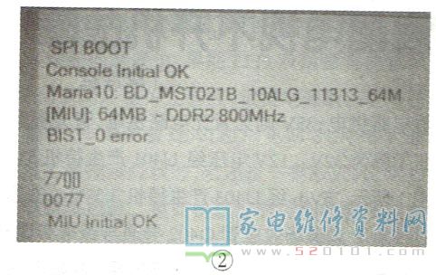 为了判断故障范围,决定先查看开机打印信息。连接好电脑、RT809F编程器和电视机,点击“串口打印”,此时编程器指示灯闪,表示可以用了。给电视交流通电,出现了开机打印信息,如图2所示。