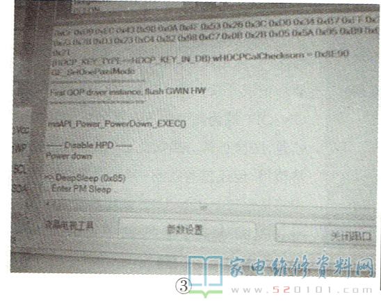 从打印信息看,一切正常,最后一行的"EnterPM Sleep"表示电视机进入待机状态。难道是开/待机执行电路有问题?测Sb端子电压为0V, Q401的基极、集电极电压分别为oV和4.2V,均正常。Q402 的栅极电压约4V,源极电压为5.1V,均正常,但漏极电压为5.1V,不正常(正常为0V)。因为P沟道场效应管Q402要导通,栅极电压必须比源极电压低5V左右。显然Q402击穿,更换Q402后试机,故障排除。小结:由于Q402击穿,在待机状态下各组电压就一直存在,造成供电时序异常而无法二次开机。提示:对于液晶彩电的指示灯亮、二次不开机故障,查看开机打印信息,有助于判断故障的大致部位,从而少走弯路,达到快修的目的。另外,数据问题也能导致指示灯亮不开机。