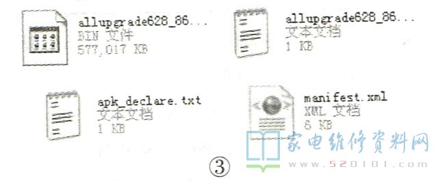 经过网上搜索,该机是乐华公司生产安卓4核智能网络主板。该机逻辑板型号为TT5461B03-2-C-1,有两组连接线与屏相连,判断该液晶屏的分辨率是1920x1080。找到升级数据文件夹MS628_ PB803_ 1920_ 1080, 打开文件夹,显示内容如图3所示。