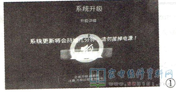 接修一台小米50英寸曲面智能网络液晶彩电,接通电源开关后,红色指示灯亮,用遥控器或本机按键二次开机后蓝色指示灯亮,显示“小米"厂标和开机画面,数秒钟后出现系统升级画面,但系统升级无进展,如图1所示。数分钟后,屏幕中间显示音量调整符号,将音量逐渐加大到“100" ,有时可正常开机,启动后可进入播放画面,播放后几分钟还是出现音量自动增大现象,按“音量-”键可减小音量,但调整后音量会再次加大到100。