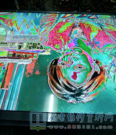 接修一台32英寸杂牌液晶电视,由于遭到雷击,主板严重损坏,该机是用智能板比较贵,经用户同意在某宝闪拍了一块TP.VST59.PB818三合一通用板。上机后声音正常图象颜色一塌糊涂,如下图所示。按配板摇控器数字键1147进入总线--选择“通用设置”--把LVDS WAP选项切换到显示正常。通用板进总线方法基本上都是按摇控菜单+数字键1147,希望对初学者有所帮助。