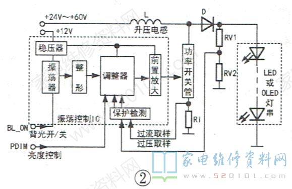 本型背光板有四个相同通道,其中一个通道的电路如图3所示。