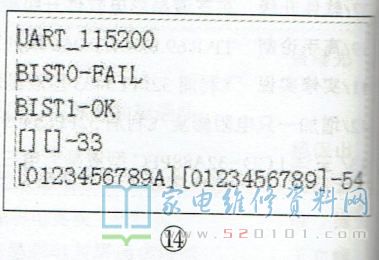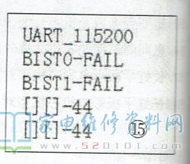 第2行信息表示检测BISTO失败,第4.5行信息表示主芯片发送给BISTO的信息及BIST0返回的信息均缺失。-般情况下,如DDR电路异常,并不影响主芯片对DDR信息的发送,只有主芯片相关引脚虚焊或损坏,才会导致DDR检测信息的发送与接收信息缺失。补焊主芯片后试机,故障排除。从本例可看出,开机打印信息提示BISTO对应的DDR检测失败,但故障原因并不是该DDR电路的问题。再如:一台创维MS48机芯液晶彩电,二次不开机,其开机打印信息如图15所示。第2、3行信息表示对两块DDR的检测均失败,第4.5行信息表示在通讯检测中,两块DDR均未收到主芯片发送的信息。根据经验,两块DDR同时损坏的可能性不大,故障原因极有可能是主芯片虚焊或损坏。补焊主芯片无效,更换主芯片后故障排除。