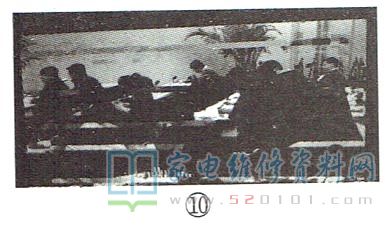 在非智能平板彩电中,部分主板上安装有一片或两片DDR,其主要作用是对主芯片解码过程中产生的中间数据进行存储,以便后续处理时调用。在此过程中,DDR的作用相当于解码器的“中转仓库”。若"中转仓库”运转异常,必然会导致解码所得结果异常,通常表现为以下两种现象:一是图像的部分区域有马赛克,如图9所示;二是图像显示错乱,出现乱码,或者在不同区域出现两幅或多幅相同的图像,如图10所示。