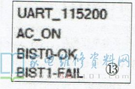 例如:在图11(2期8页)所示的主板中,BISTO对应的DDR位于主芯片MSD6A918WV-WR的左侧,BIST1对应的DDR位于主芯片的上方。若该主板的开机打印信息如图12所示,则表示检测BISTO失败( FAIL表示失败的意思),需检测主芯片左侧的DDR电路;若开机打印信息如图13所示,则表示检测BIST1失败,需检测主芯片上方的DDR电路。值得注意的是,开机打印信息显示的是开机过程中的检测结果,显示的异常情况并不等同故障原因。对于故障原因的判断,需根据开机打印信息结合电路配置进行分析,例如:一台TCL MS28机芯液晶彩电,二次不开机,其开机打印信息如图14所示。