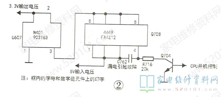 编者注:此例现象相当普遍。当我们遇到此类情况时,如作者所述,可根据电路板上IC器件信息,来推断故障机相关脚的工作条件,对表现异常的相关脚涉及的电路进行检查,最终找出故障处理方法。因此,我们平时要多收集各种IC的维修资料。