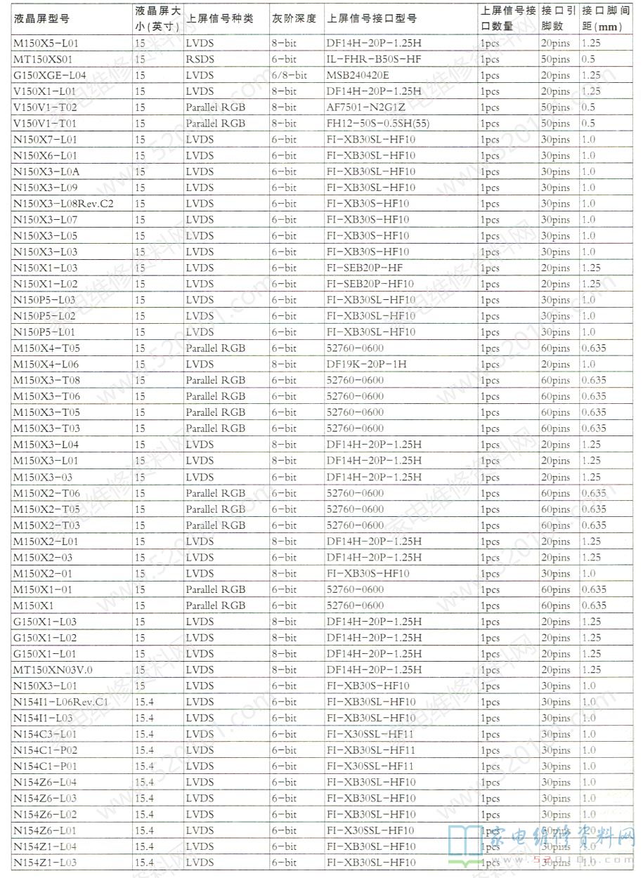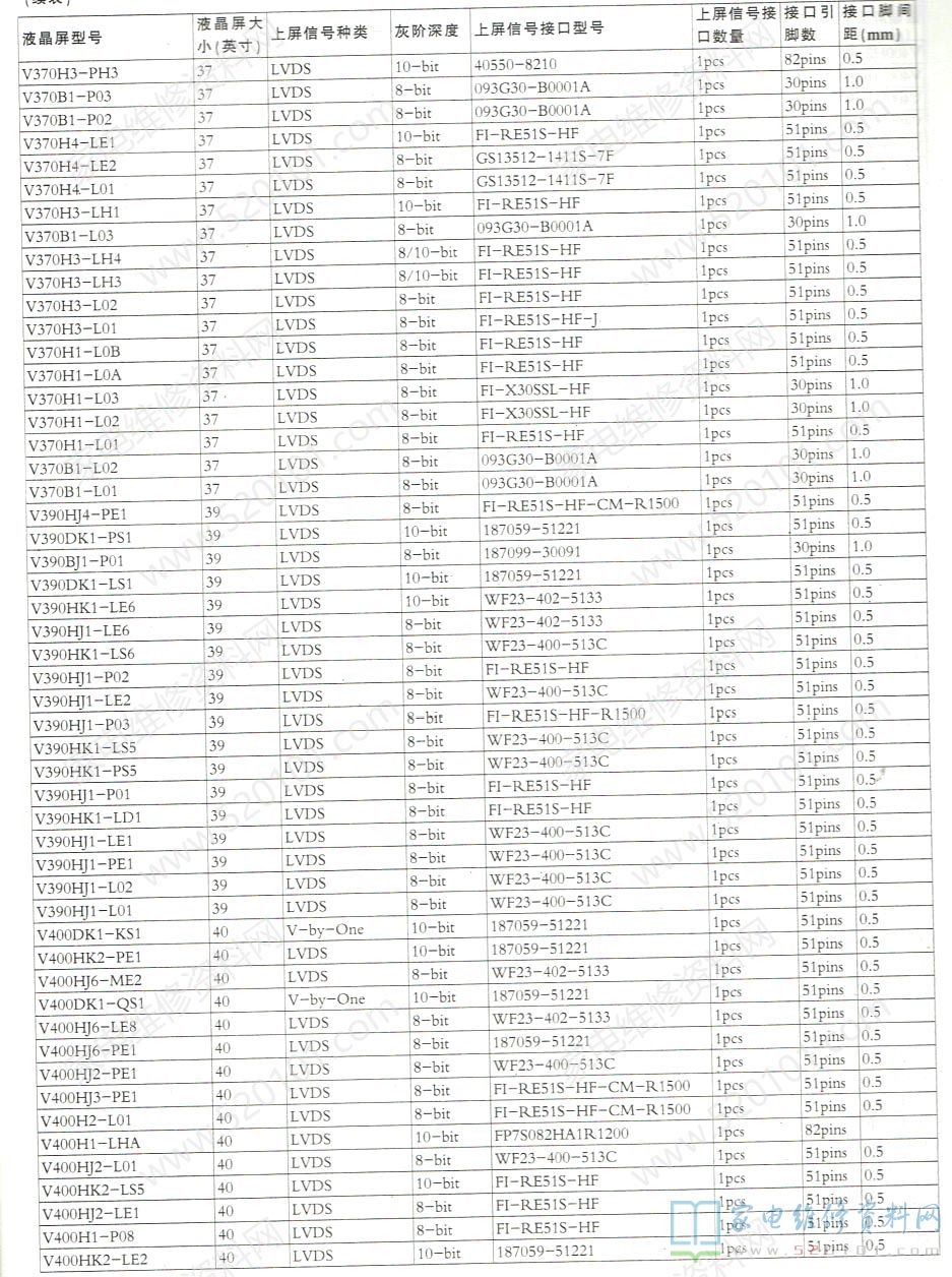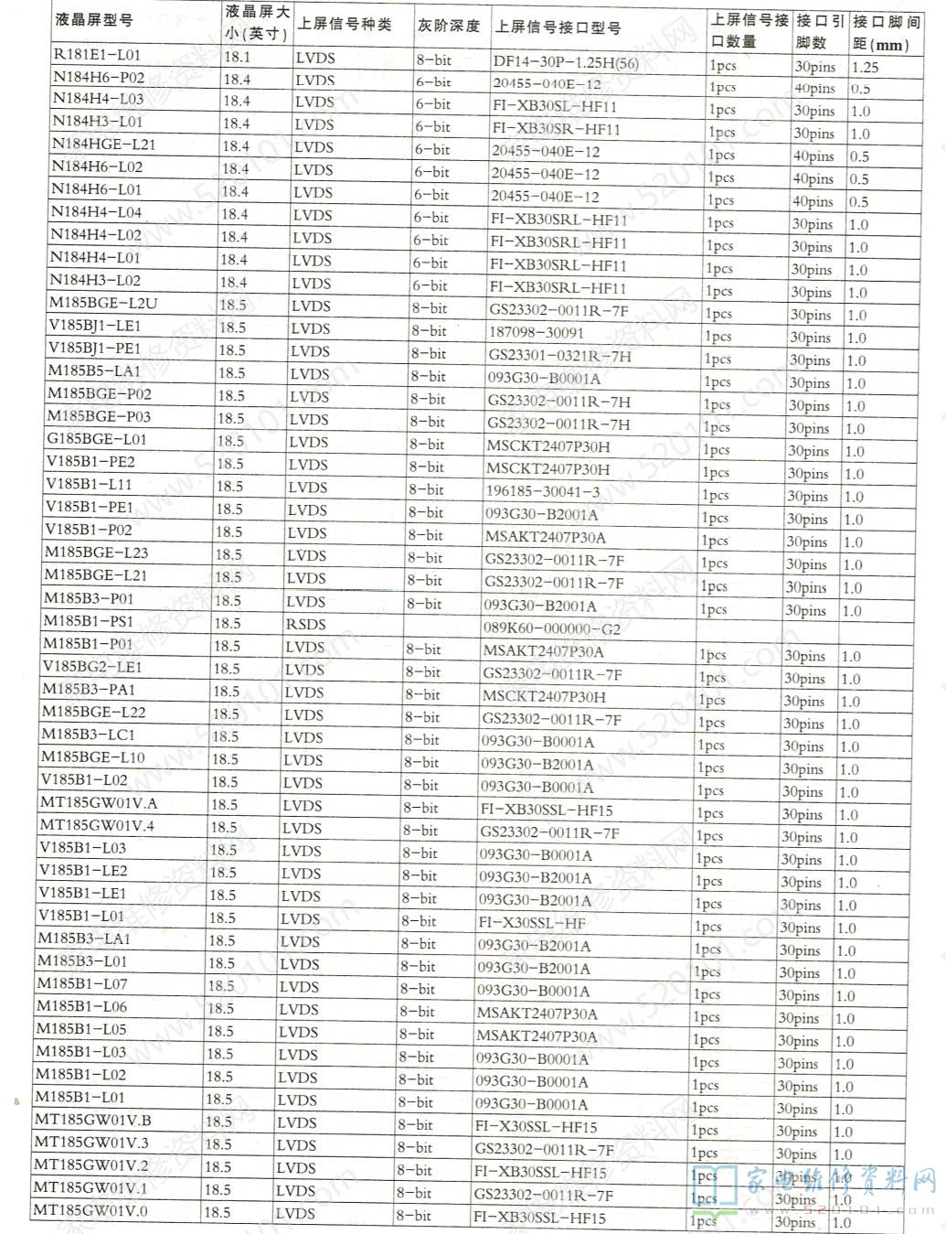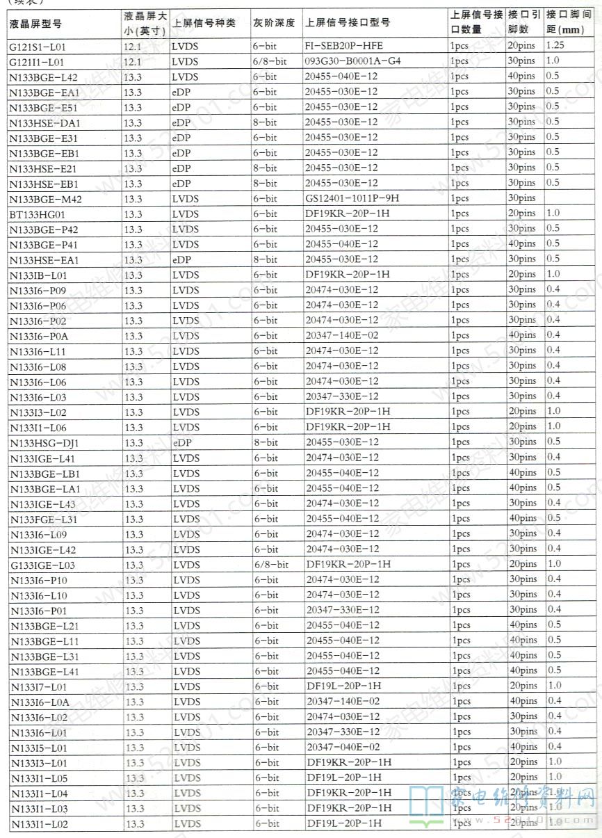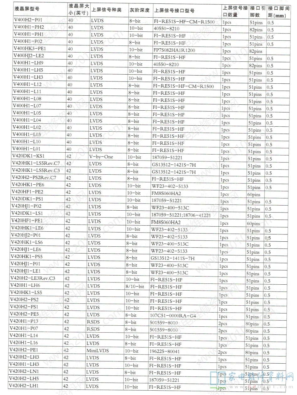 本表说明:1.在上屏信号种类中,"MIPI"的全称是Mobile Industry Processor Interface, 该接口是2003年由ARM.Nokia.ST、TI等公司成立的一个联盟,目的是把手机内部的接口(如摄像头、显示屏接口、射频/基带接口等)标准化,从而减少手机设计的复杂程度,并增加设计灵活性。"LVDS”的全称是Low-Voltage Diferential Signaling, 表示低电压差分信号。“eDP” 的全称是EmbeddedDisplayPott,是一种支持嵌入式数码音视讯传输接口。“Parallel RGB”表示并行RGB信号。“V-by-One”接口的意思是题,现主要用于超高清的大屏幕液晶屏中。2.在 上屏信号接口数量一列中,"pcs"表示单位“个”。