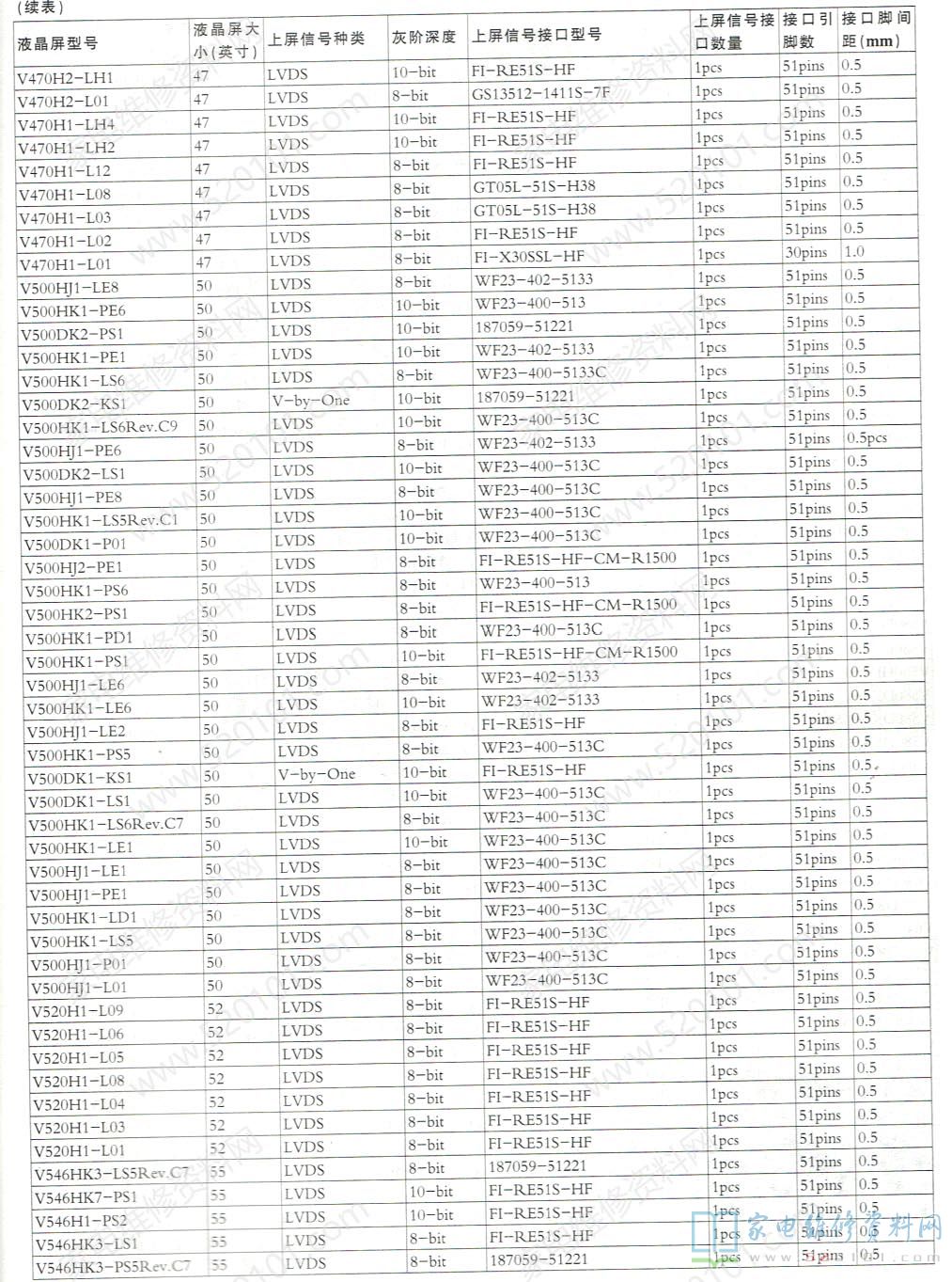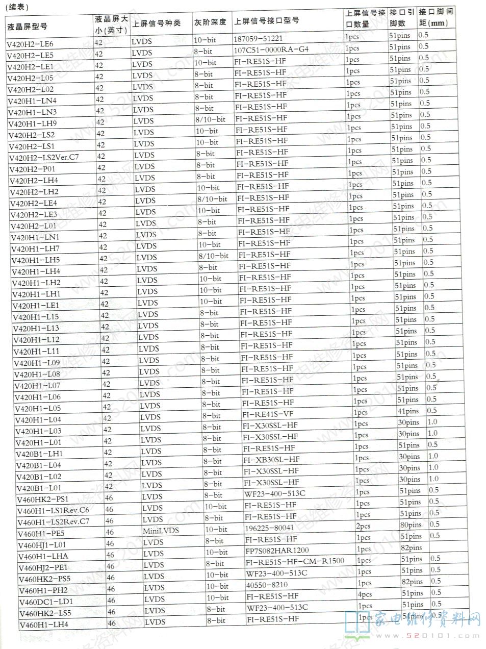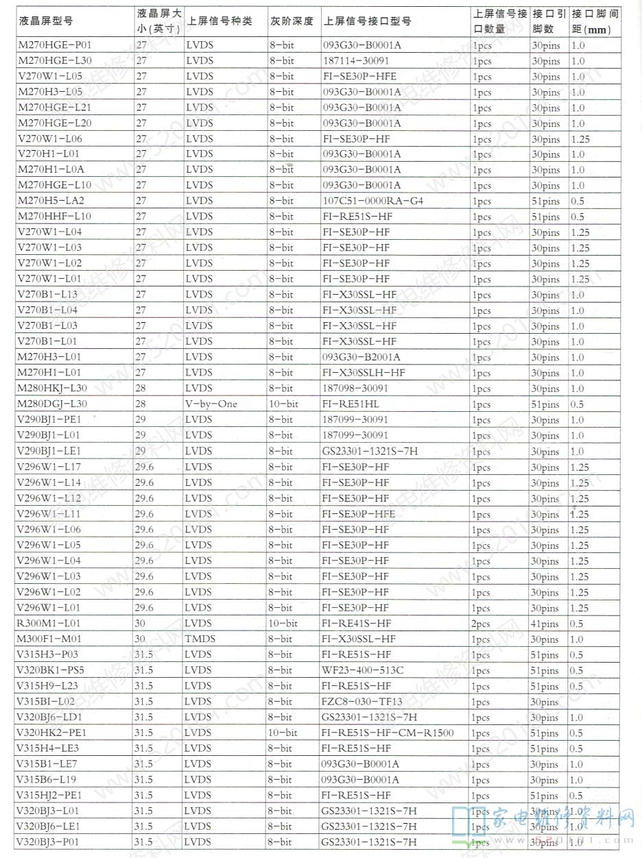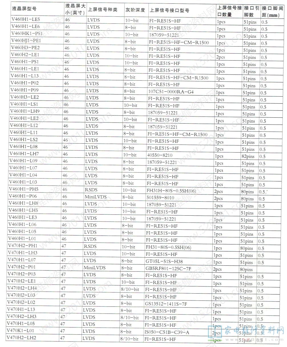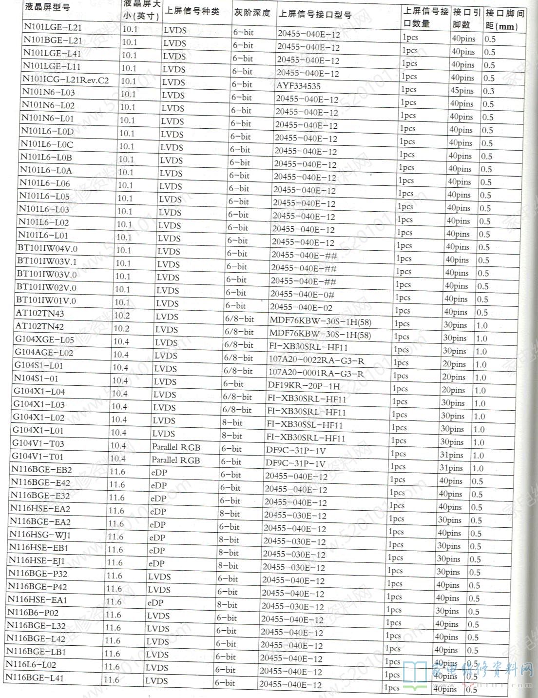 本表说明:1.在上屏信号种类中,"MIPI"的全称是Mobile Industry Processor Interface, 该接口是2003年由ARM.Nokia.ST、TI等公司成立的一个联盟,目的是把手机内部的接口(如摄像头、显示屏接口、射频/基带接口等)标准化,从而减少手机设计的复杂程度,并增加设计灵活性。"LVDS”的全称是Low-Voltage Diferential Signaling, 表示低电压差分信号。“eDP” 的全称是EmbeddedDisplayPott,是一种支持嵌入式数码音视讯传输接口。“Parallel RGB”表示并行RGB信号。“V-by-One”接口的意思是题,现主要用于超高清的大屏幕液晶屏中。2.在 上屏信号接口数量一列中,"pcs"表示单位“个”。