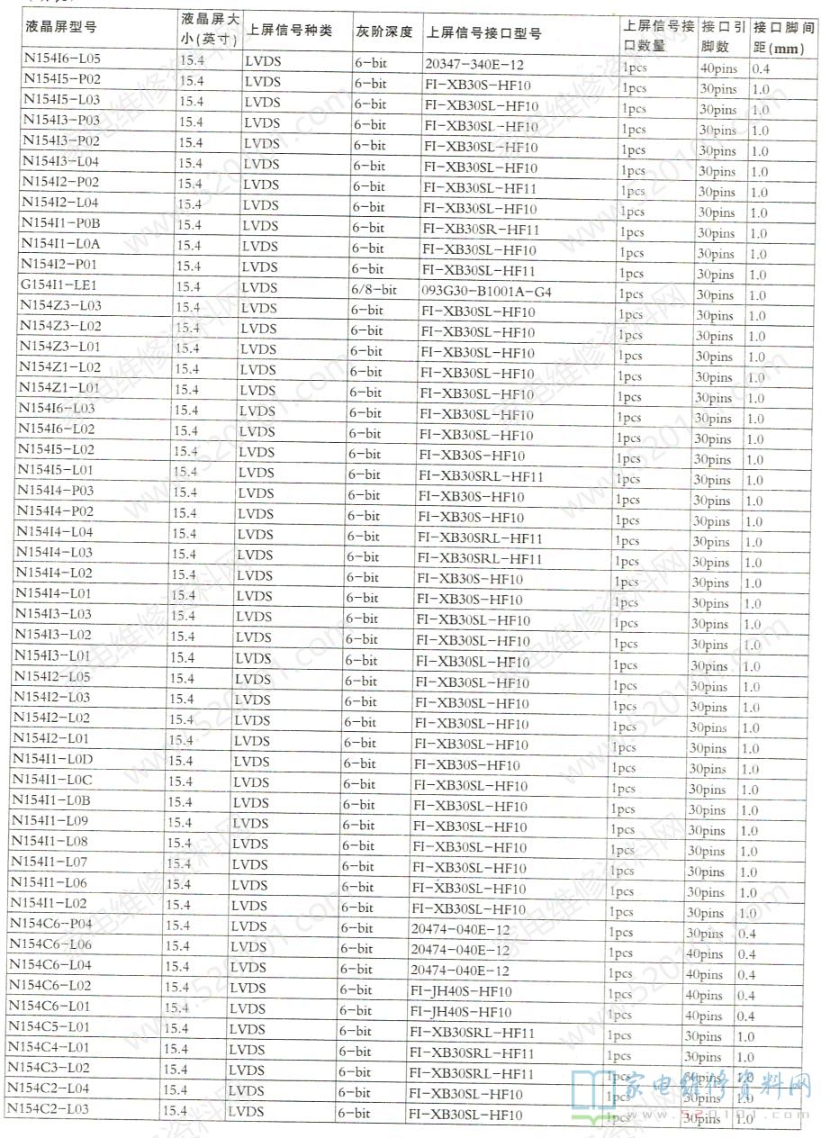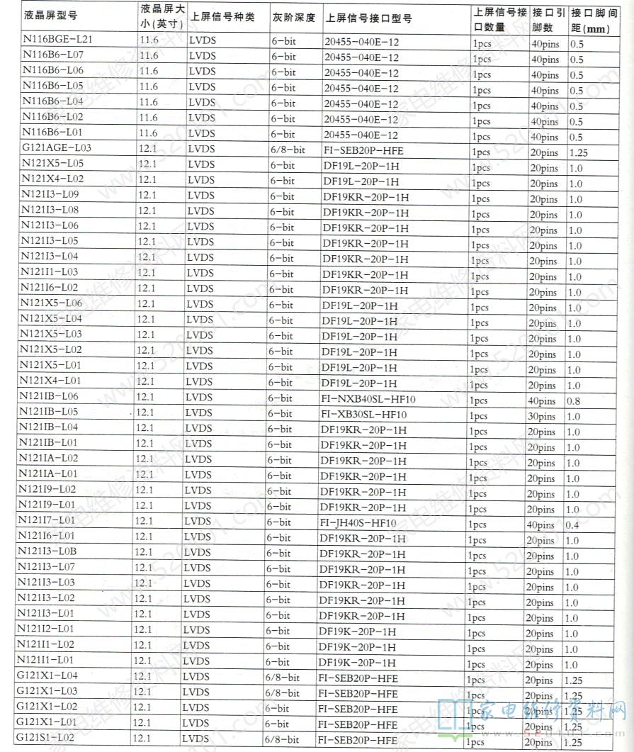 群创光电股份有限公司( Innolux Display Group )是由富士康科技集团所创立的TFT-LCD面板专业制造公司,成立于2003年,总部位于台湾新竹科学园。2010年3月该公司与奇美电子统宝光电合并,为面板业界有史以来最大宗的合并案:群创为存续公司,保留奇美电子为公司名。为区分奇美品牌, 2012年12月公司更名为群创光电股份有限公司。其液晶屏接口参数如下表所示(本数据截至日期为2016年前生产的产品)。