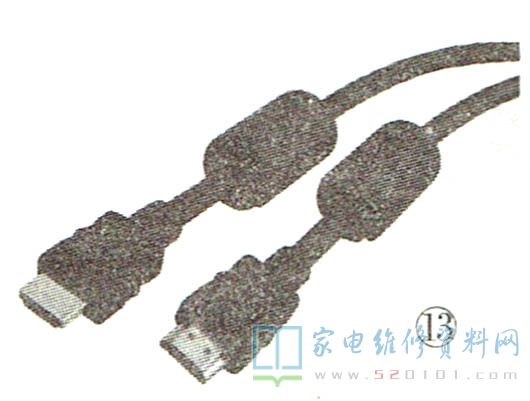 接下来看线缆两端是否带有抗干扰磁环,如图13所示。磁环对于HDMI线的作用是阻止混入原始信号中的杂质信号输入或输出。连接在线缆内部的地线将杂质信号(高频电流)引到大地,这样就能达到净化传输信号的目的。