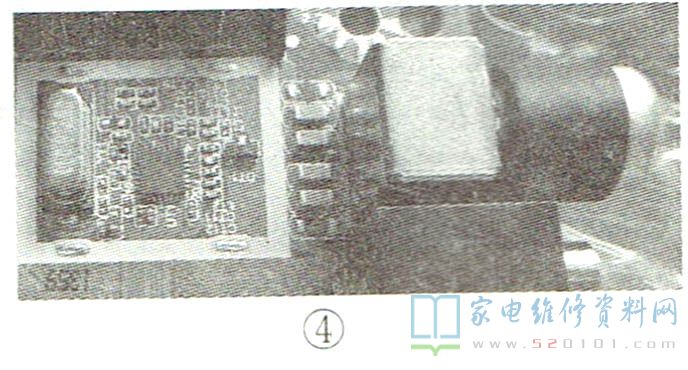 新型液晶彩电大都采用微型化的硅高频头,如图4所示。对于不搜台、不存台故障,主要检查高频头供电电压3.3V是否正常,前段滤波网络有无虚焊现象,总线电压是否正常,AGC电压是否正常(在搜台过程中,AGC电压在0V-3.3V之间波动,有信号时AGC电压低,无信号时AGC电压高),内部谐振电感有无虚焊损坏现象。 如果上述检查均正常 ,则故障原因为高频头1C不良。对于接收射频信号时,图像效果差、噪声点大故障,主要检查前段滤波网络及中频信号输出滤波网络是否正常,最后代换高频头IC。
