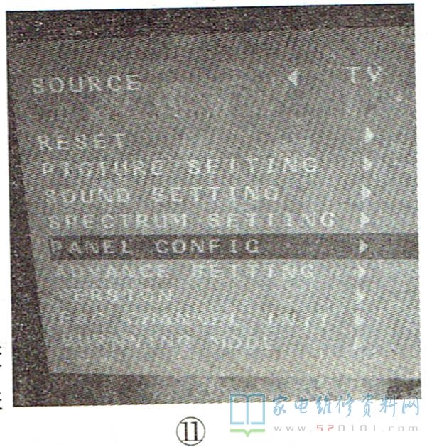 例2:一台创维42LBIAW彩电(8TT9机芯),TVAV图像彩色失真且有拖尾现象,但伴音正常。分析检修:输入VGA或高清YPbPr信号,图像正常。由于TV、AV图像类仪彩色制式设置错误时的现象,先打开菜单,检查彩色制式设置,正确。VGA及YPbPr图像正常,这说明主芯片中的数字视频信号处理电路、魔画板电路、逻辑板(T-CON)及屏组件均正常,怀疑总线数据有问题,决定先进入总线进行初始化操作试试。