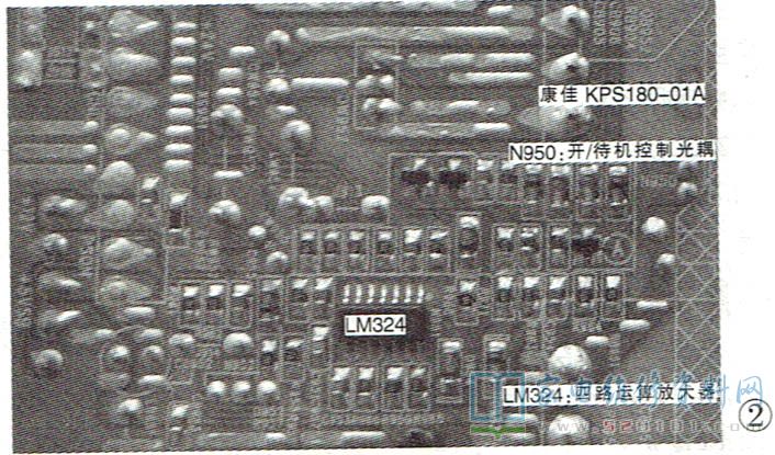 导致开关电源保护起控的原因较多,在确认各组电压负载无过载的情况下,应检查电源板上的过压过流检测电路。这部分电路安装在开关电源次级电路中,对输出的+5V、+12V、+24V电压及电流进行检测,通过模拟可控硅或运放电路对开/待机电路进行控制,以达到保护的目的,其特征元件是过流检测电阻稳压二极管(稳压值多为5.6V、13V 27V)以及组成模拟可控硅的三极管或运放集成块,如图2所示。