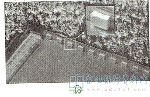 若故障是屏内LED灯条有问题,则需小心翼翼地拆开液晶屏,先对LED灯条进行直观检查:一是看灯条连线以及插座引脚焊点有无松动现象,插座中的插针是否接触良好:二是看LED灯珠引脚有无开焊现象,如图18所示;三是看LED灯珠内芯有无发黑现象,若发黑,表明该灯珠已损坏。