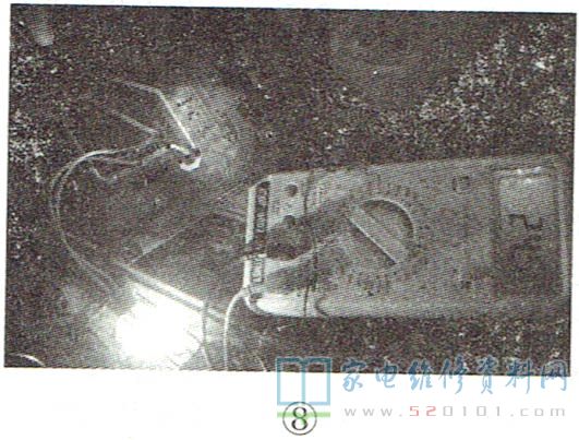 对于背光亮一下就熄的故障,需在启动背 光瞬间测量功率输出电|路的供电是否稳定,如有波动现象,可给开关电源电路带上假负载,如图8所示,以检查其带载能力是否正常。