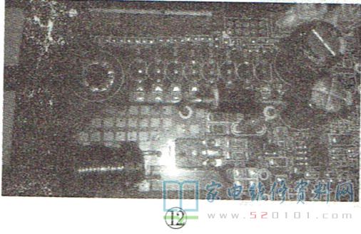 在背光采用LED的液晶彩电中,背光驱动电路中的开关管、升压二极管、滤波电容是重点检测元件,在采用冷阴极灯管的液晶彩电中,功率管高压变压器高压电容及灯管插座是重点检测元件,如图13所示。