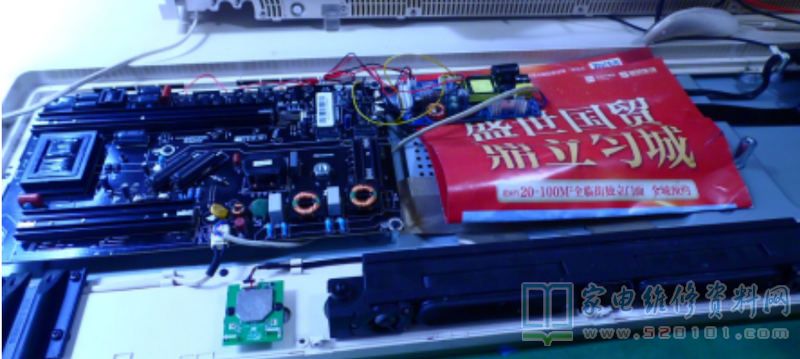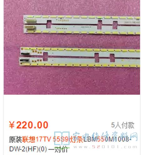 接修一台联想出品的一款17TV 55S9i液晶电视,故障现象是黑屏有声,拆机检查相关电压,判断背光有问题 。这机型在市面上很少见到,没有办法,只有开屏(开屏过程相对辛苦),一看这灯条,网上一查,价格出奇的贵。