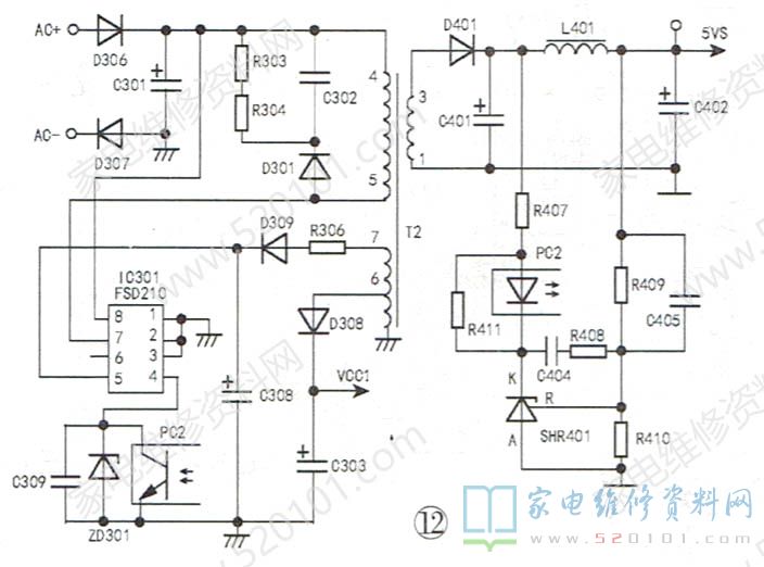 该机副电源块采用FSD210(IC301),如图12所示。