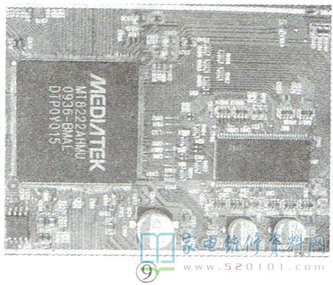 值得一提的是,在绝大多数液晶彩电中,CPU并不是单独一块IC,而是与视频解码、图像格式变换、缩放处理等电路集成在一块芯片内,该芯片常称作主芯片或单芯片。