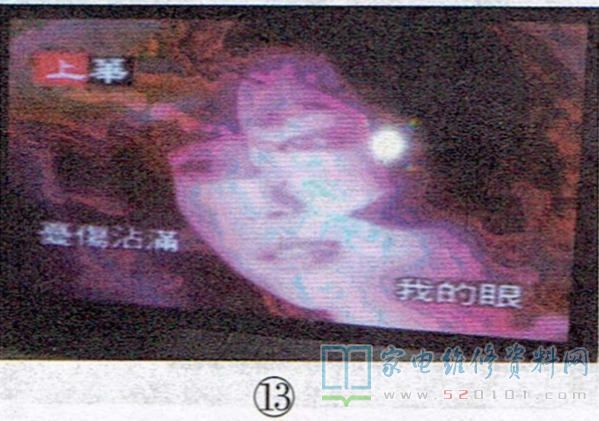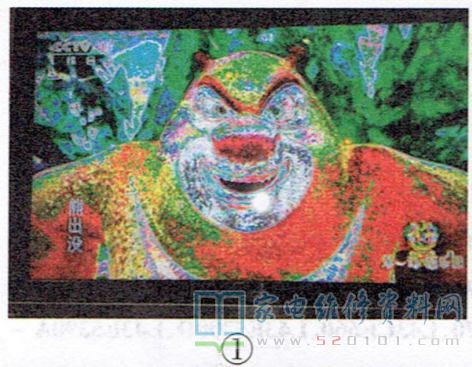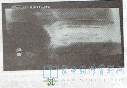 另一方面是指VGL、VGH 电压滤波不良,尤其是vGH电压滤波不良,其表现出来的故障现象与滤波不良的程度有关,轻者图像不够细腻,过渡部分不清晰,边缘有毛刺,重者图像明显拖尾,整个图像模糊不清,运动图像尤为严重,如图17所示。