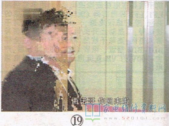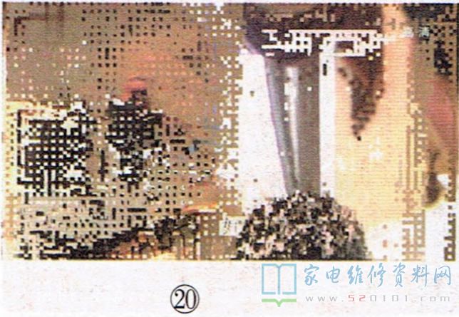 主芯片通过地址线、数据线及一些控制信号线与DDR存储器建立通信,进行数据的读出和写入。若DDR存储器电路异常,则会丢失许多中间信息,解码或缩放处理后所输出的数字信号必然会缺失,这样图像上就会出现马赛克,如图19所示。