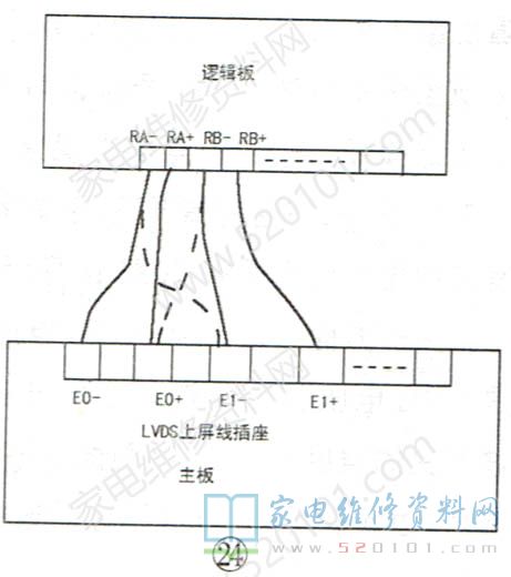 2、上屏线插头接触不良上屏线是信号板与逻辑板的连接线,是供电与图像信号的传输通道,其外面包裹着起电磁屏蔽作用的胶布,如图10所示。
