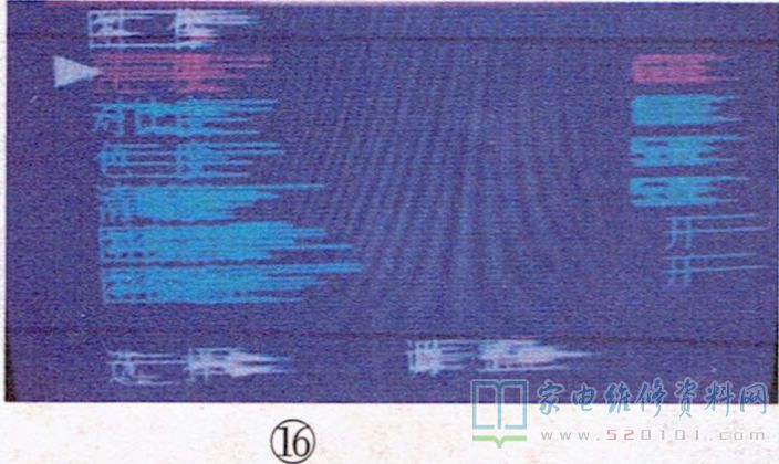 VGL与VGH电压是控制液晶分子翻转的两个非常重要的电压,其正常值与液晶屏型号有关,VGL电压通常在-6V左右,VGH电压通常在+26V左右。只有vGL与VGH电压正常,且纹波系数非常小,显示的图像才可能边界清晰、色彩真实过渡平滑,且运动图像基本无拖尾现象,显示的文字笔画饱满,无发虚现象。此处所说的vGL、VGH电压异常包括两方面:一是VGL、VGH电压偏离正常值太多,表现出的故障现象千奇百怪,除常见的灰屏满屏彩 条外,还易出现图像不清晰、拖尾局部区域有色斑,显示的文字边缘模糊不整齐,有重影现象,如图15所示。另外,在这种情况下,菜单字符或静止图像也有较明显的拖尾现象如图16所示。