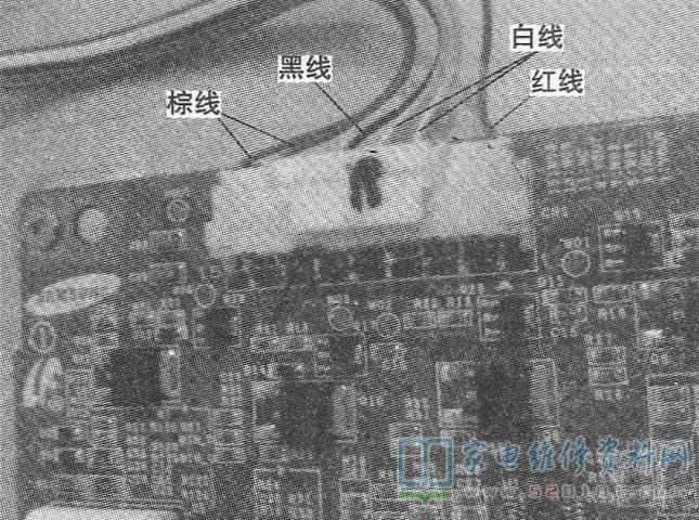 (2)短路反馈法。针对开机屏幕亮一下即灭的故障,首先将反馈线全部短路然后开机。常见现象表现为两种情况:1)开机后背光点亮,仔细观察屏幕光栅亮暗正常,无暗角。此时不需要拆屏,故障原因是某一路反馈有开路的,灯珠无问题;2)开机后背光点亮,仔细观察屏幕光栅有暗角,说明屏内灯珠有开路的,必须拆屏检修更换。拆开后很容易判别好坏:不亮的便是坏的如图1所示,红线和黑线为供电线,白线和棕线为反馈线。