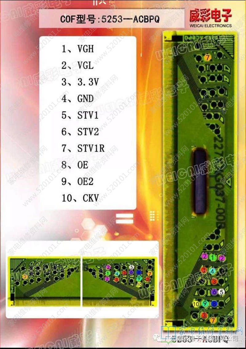 液晶COF边板5253-ACBPQ飞线点位图 2023-02-10 23:35:40 阅读 858 次 评论 0 条 摘要: COF型号5253-ACBPQ的VGH、VGL、3.3V、GND、STV1、STV2、STV1R、0E、0E2、CKV点位如下图所示。 COF型号5253-ACBPQ的VGH、VGL、3.3V、GND、STV1、STV2、STV1R、0E、0E2、CKV点位如下图所示。 版权声明:本文为转载文章,版权归原作者所有,欢迎分享本文,转载请保留出处! 点赞 分享: PREVIOUS:液晶COF边板5253-BCBR3飞线点位图 NEXT:液晶COF边板8697-BCYA7飞线点位图 文章导航