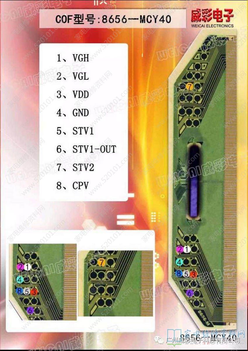 液晶COF边板8656-MCY40飞线点位图 2023-02-10 23:58:41 阅读 1074 次 评论 0 条 摘要: COF型号8656-MCY40的VGH、VGL、VDD、STV2、STV(OUT)、0E、CPV点位如下图所示。 COF型号8656-MCY40的VGH、VGL、VDD、STV2、STV(OUT)、0E、CPV点位如下图所示。 版权声明:本文为转载文章,版权归原作者所有,欢迎分享本文,转载请保留出处! 点赞 分享: PREVIOUS:液晶COF边板8656-MCY45B飞线点位图 NEXT:液晶COF边板8656-LC530飞线点位图 文章导航