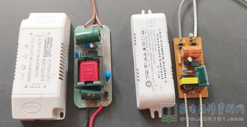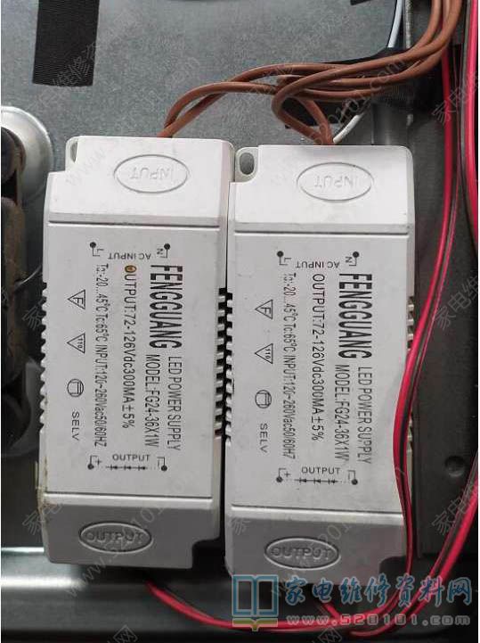 换个思路,找LED驱动总成,这种用在电视上要用隔离的(要和220V隔离的,普通的非隔离型可是不安全的),找到两个正好可用,也不用改电流,接上试用,效果还可以。再加控制,取电从主板12V,待机6.5V,继电器断不开,加三极管控制解决。非标准维修就这样吧。全部改好装机效果正常。