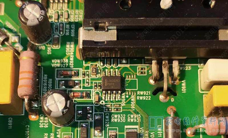 接修一台55英寸液晶电视,故障表现为有声音屏不亮,据说是使用中听到电视内异响然后黑屏。修前先点LED,两组中一组正常,然后看图象完全正常(不点屏怕掉屏故障的坑)。于是拆屏修,换坏了的灯珠,3V/2W的,原规格换上,用自制点灯器点亮两组LED。小心的将屏装好,复原电路和接线通电,满以为可以正常,结果还是屏不亮。接下来就是一翻地毡排查,确认小8脚芯片不良,找了几十块板子,但是都没找到这个8脚芯片。